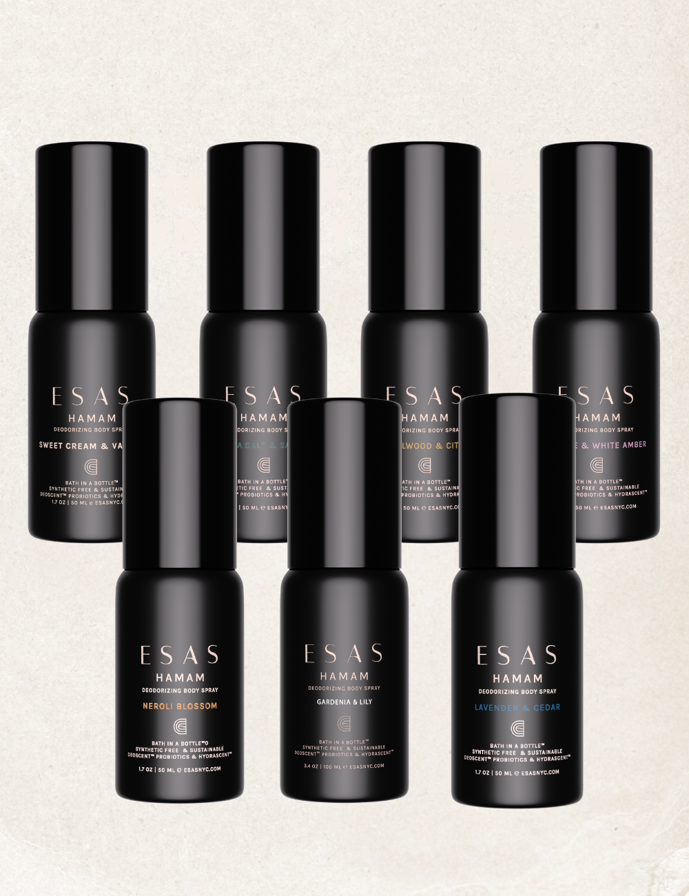 Inspired by Roman baths, the ancient Hamam ritual dates back to the 14th century and is designed to purify and cleanse the body, mind and spirit. Like a "bath in a bottle", Esas Hamam Body Splash is scientifically formulated with the purest ingredients to cleanse, deodorize, and refresh wherever you go.