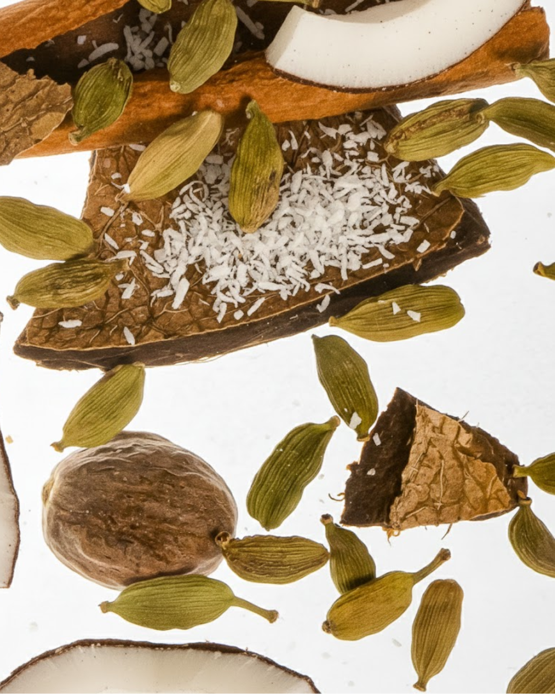 Coconut and Olive Wax Blend**, Cedarwood Himalayan, Cinnamon, Clove, Benzoin, Cardamom, Cedarwood Virginia, Cypress Leaf, Coconut Pulp Co2, Elemi.