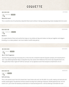 COQUETTE: Organic Sugarcane Alcohol*, Distilled Water, Coconut-Derived Glycerin, Grape Leaf Tincture**, Rose, Vanilla*, Jasmine, Gardenia*, Tonka Bean, Davana*, and Patchouli*.