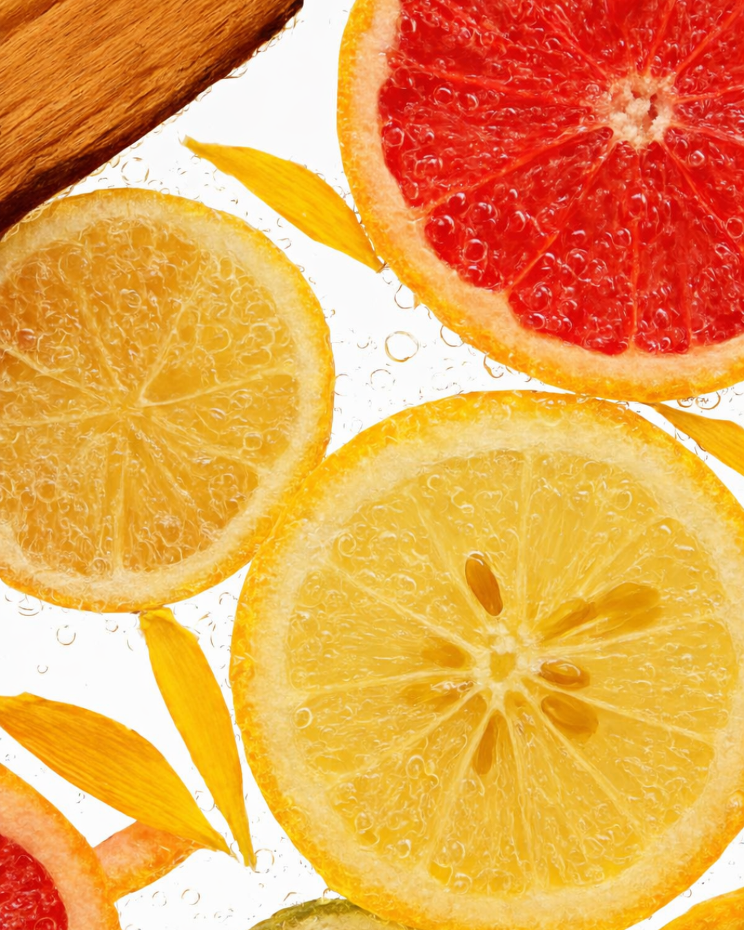 Grapefruit, Bergamot, and Lemon burst open with a crisp, sunlit citrus freshness touched by a hint of juicy Davana.