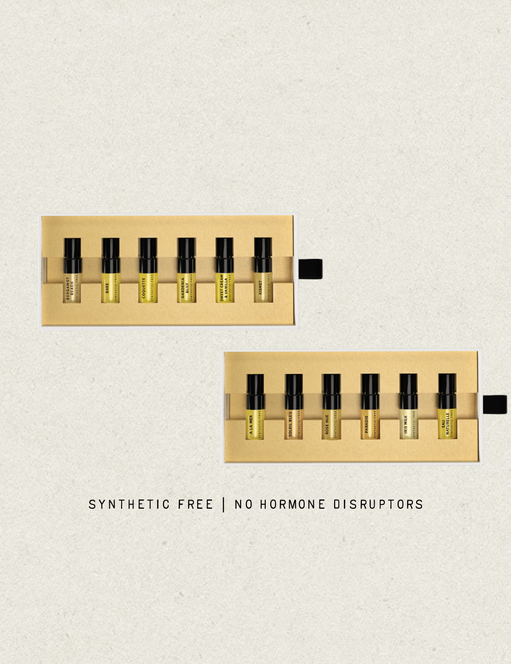 Our fine fragrances are a new kind of luxury—crafted with 100% natural ingredients and free from the synthetic chemicals that dominate the conventional fragrance industry. While traditional perfumes can dry and irritate the skin, our formulations are designed to nourish and hydrate. We replace synthetic fillers with moisturizing coconut-derived glycerin, antioxidant-rich grape leaf extract, and Certified Organic Alcohol*, creating a holistic experience for your skin and mood. Our fragrances are sophisticated, toxin-free, and provide the benefits of skincare, offering a truly unique sensory experience that not only smells exquisite but also supports your skin’s health.